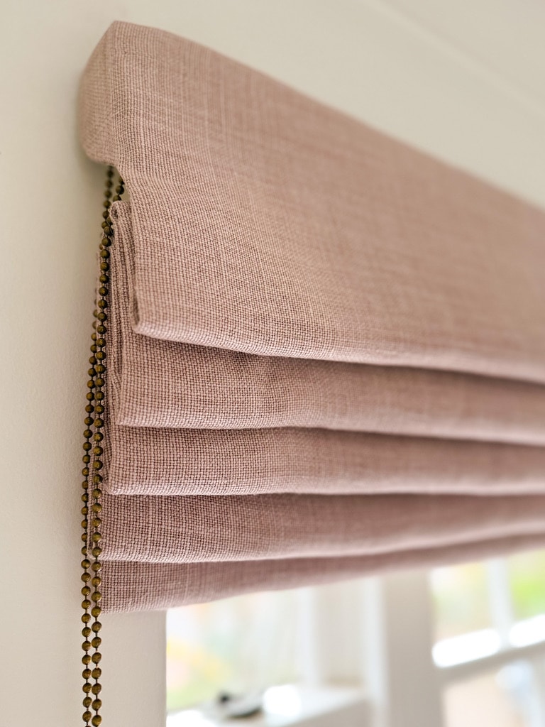 - Make a fully operational interlined Roman blind with no visible stitching fitted to supplied chain mechanism, compliant with blind regulations. Including trimming detail to lower edge, integrated side returns, integrated rod pockets and cascade/waterfall folds.