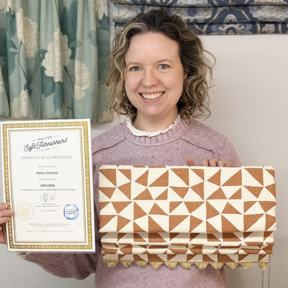 On completion of Level ONE, TWO, THREE & Cushion Making students will be awarded an Accredited Certificate ‘Diploma in Professional Curtain Making & Soft Furnishings‘.