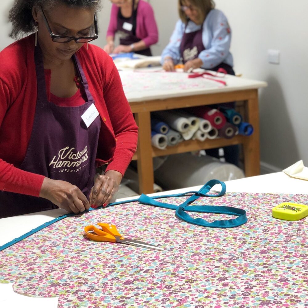 Each Course Pack includes beautiful designer fabric, lining & interlining, template fabric, piping, plus all the essential make-up products and components required to complete your training to a professional standard.