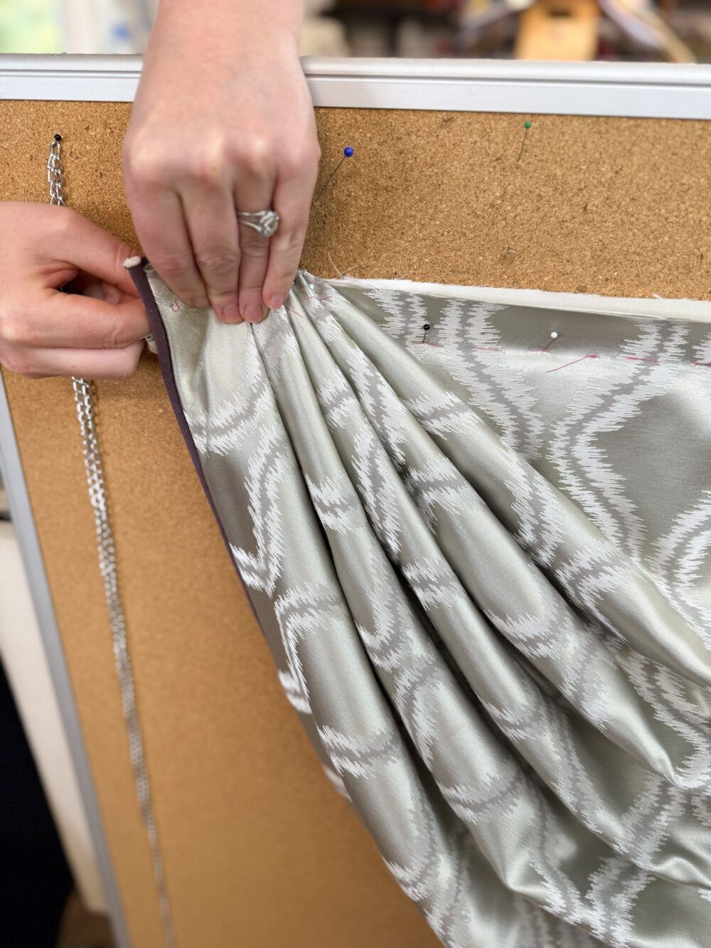 Master how to construct and create the perfect swag and tail template to fit to a variety of window shapes. Make a full size swag & tail sample.